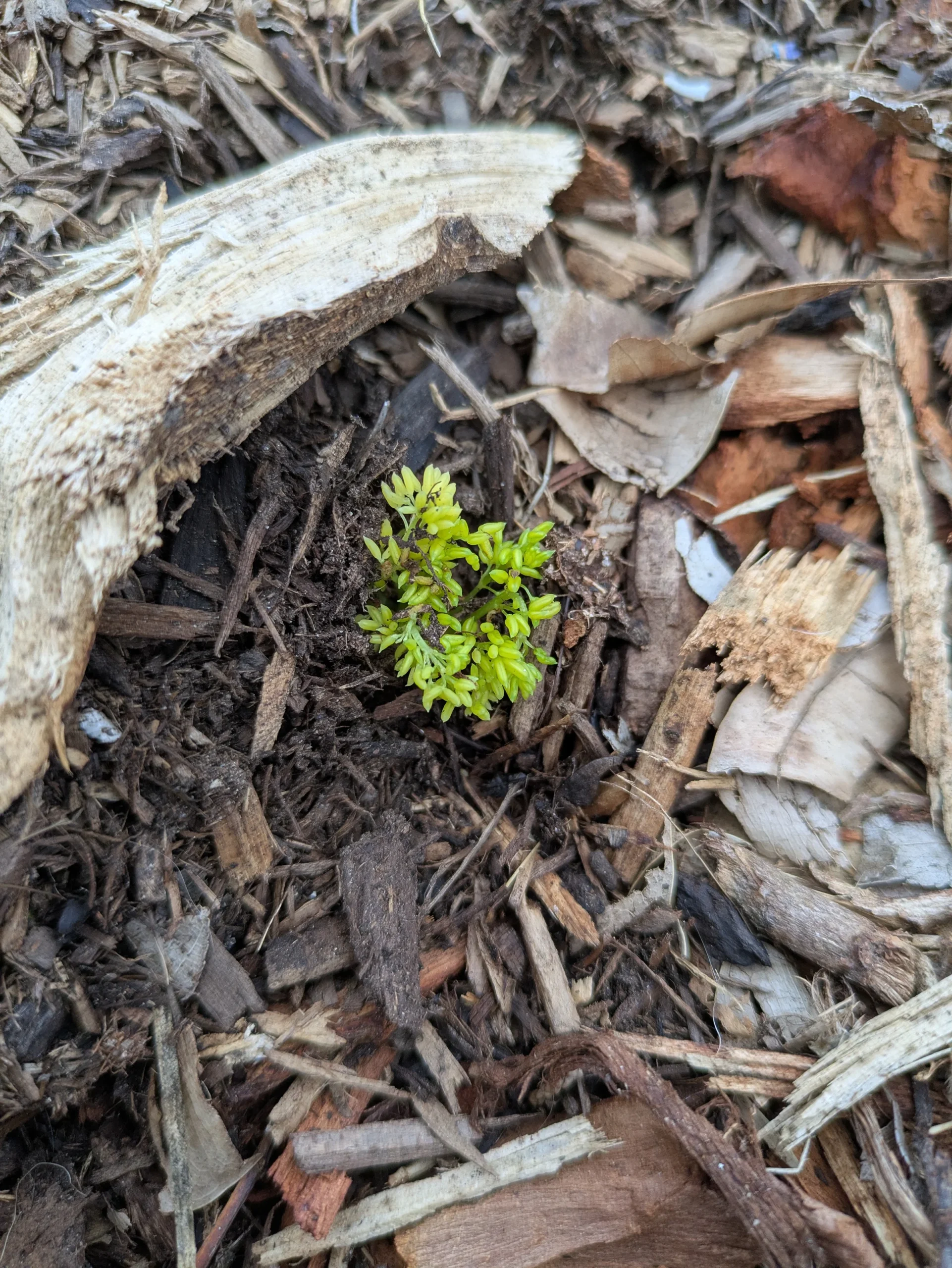 It’s only been 1.5 months since we started this, and every day I come out with a cup of coffee to wander and enjoy the new sites that the yard has to offer: the wooly blue smells like bubblegum, there’s a moss that wasn’t there before, and so many different types of fungi that probably hitchhiked over.