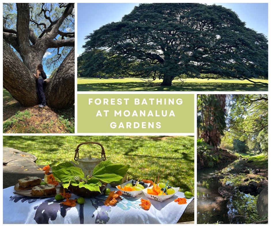 As a certified forest therapy guide, I offer forest bathing experiences to visitors and residents of all ages at various locations on Oʻahu (and on occasion the Neighbor Islands). Individuals and groups (sometimes corporate) come with their own goals, and as a guide, mine is to use my training and intuition to open the door to the therapy that nature always provides.