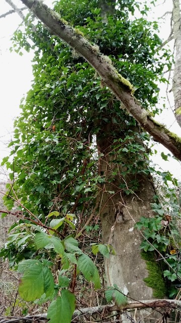 Now visitors to Oscar no longer have to look at the tall trees in the park covered with ivy, and the holly will slowly die from the girdling of their bark.