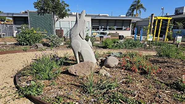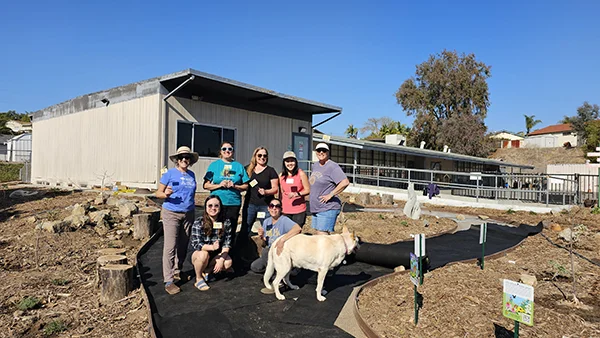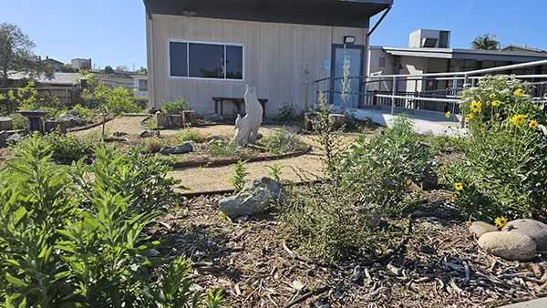Wild Ones San Diego is dedicated to planting native flora that support native fauna, and we were excited to have the opportunity to install a pollinator garden in the heart of San Altos Elementary School. We were especially inspired to replace the existing lawn because children were continuously going to the nurse with puncture wounds from the spiked seed pods. We removed the dangerous weeds, designed the garden, and laid the groundwork in 2024, with the help of a grant from Wild Ones National. We finished planting and installing signage in January 2025, and held a ribbon cutting ceremony for the school board, PTA, students, and families in March 2025. Since then, the plants have absolutely thrived, and the children are able to learn from the educational signs, and sit on stumps and benches next to the water feature to observe the bees and butterflies that the garden attracts. They also learn about the food cycle, as these insects help to pollinate the school food garden immediately adjacent.