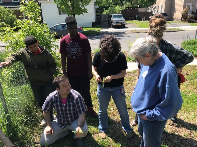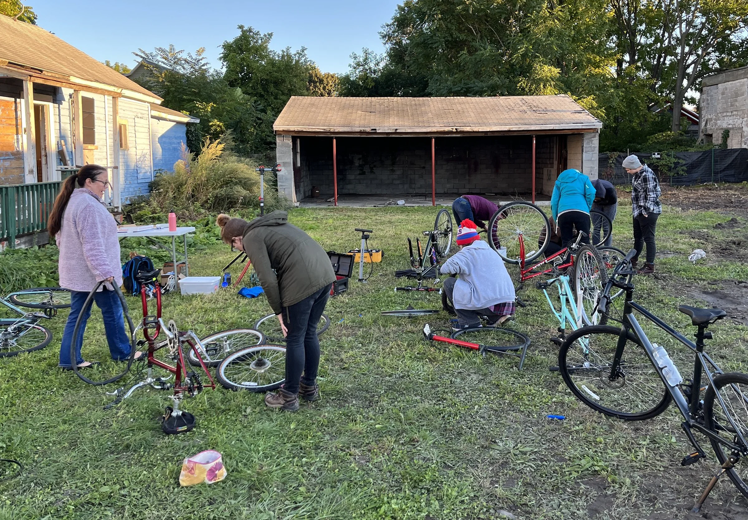 713 Marcellus Street: rewilding and home of the community bicycle workshop known as the Depot.