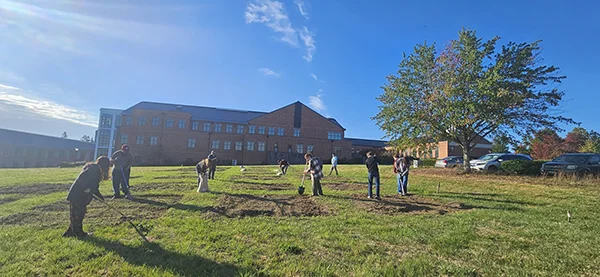 Middle: Students planting in the garden.